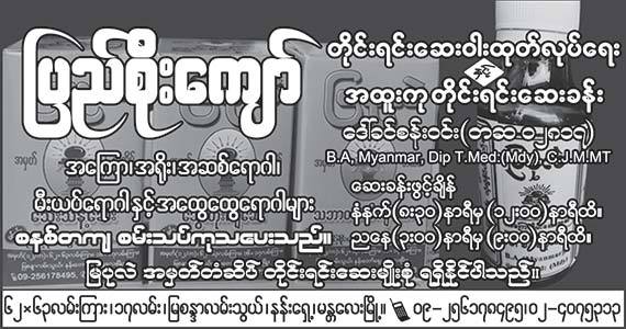 အ႐ိုးအေၾကာ၊ အဆစ္ေရာဂါ၊ မီးယပ္ေရာဂါႏွင့္ အေထြေထြေရာဂါမ်ားစနစ္တက်စမ္းသပ္ကုသေပးသည္။