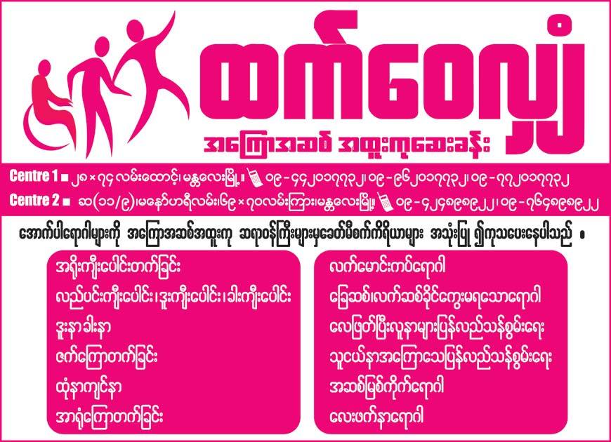 အေၾကာအဆစ္အထူးကုသေပးပါသည္။ အ႐ိုးပြေရာဂါ႐ွိမ႐ွိကိုလည္းအခမဲ့ တိုင္းတာေပးပါသည္။