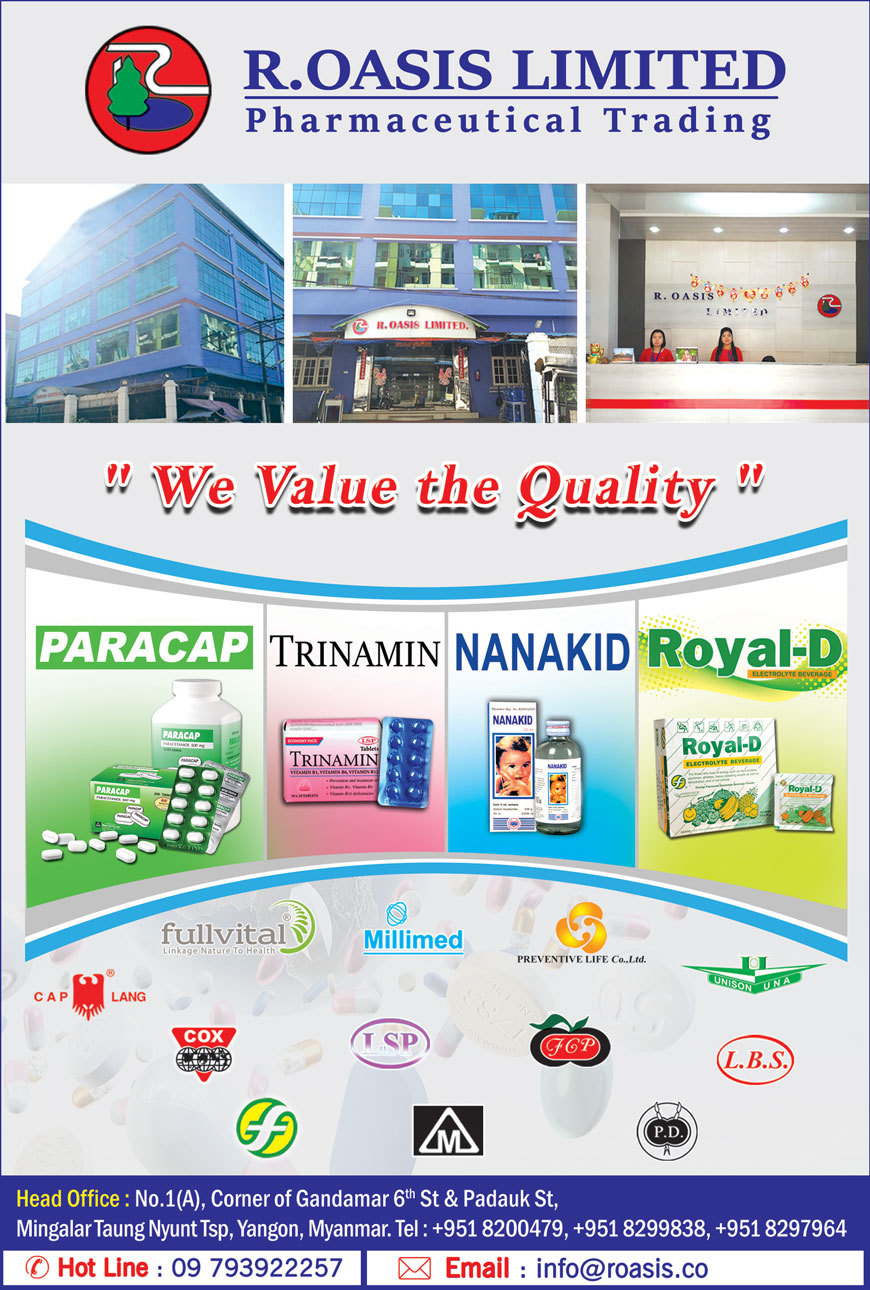 R.OASIS is one of the top pharmaceutical trading company in Myanmar. It was established since 1996 and generating with 4 official branches over the country.